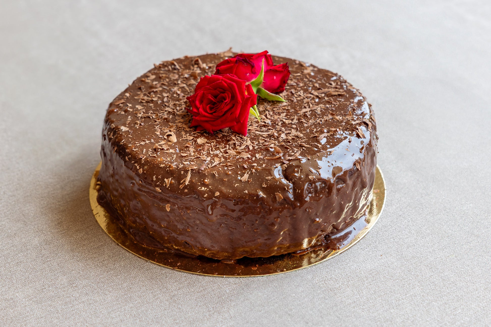 Bizcocho húmedo de chocolate relleno de mermelada de albaricoque y cubierto con glaseado brillante de chocolate negro. Intensa, equilibrada y elegantemente sencilla.