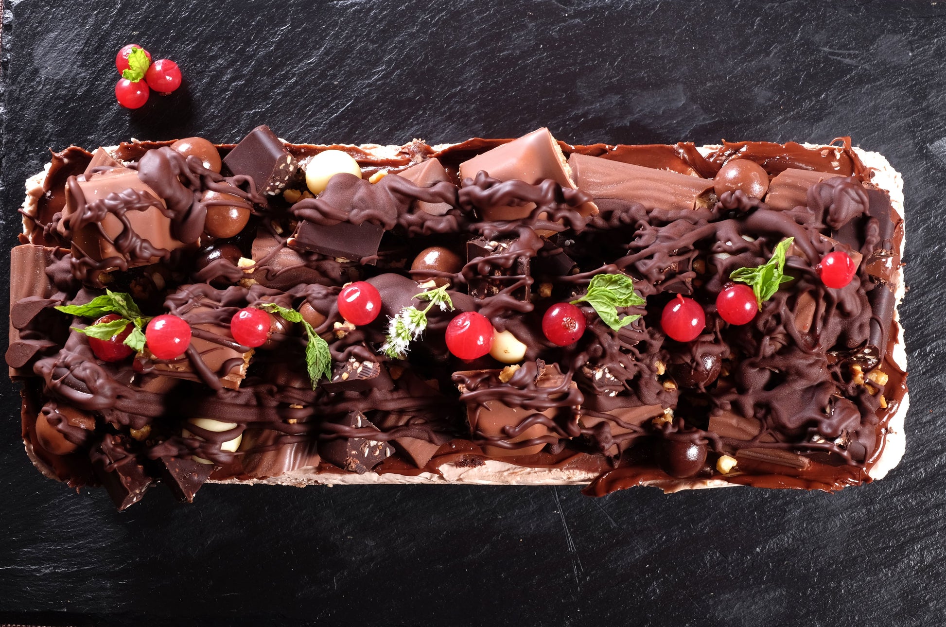 Una delicia helada de Nutella que consta de una base crujiente de arroz chocolateado seguido de una crema helada de crema de Nutella y cubierto con cobertura de Nutella y barras de chocolate Kinder con un toque de frutos rojos y aromática hierba buena. Un deleite para los adictos a la Nutella.