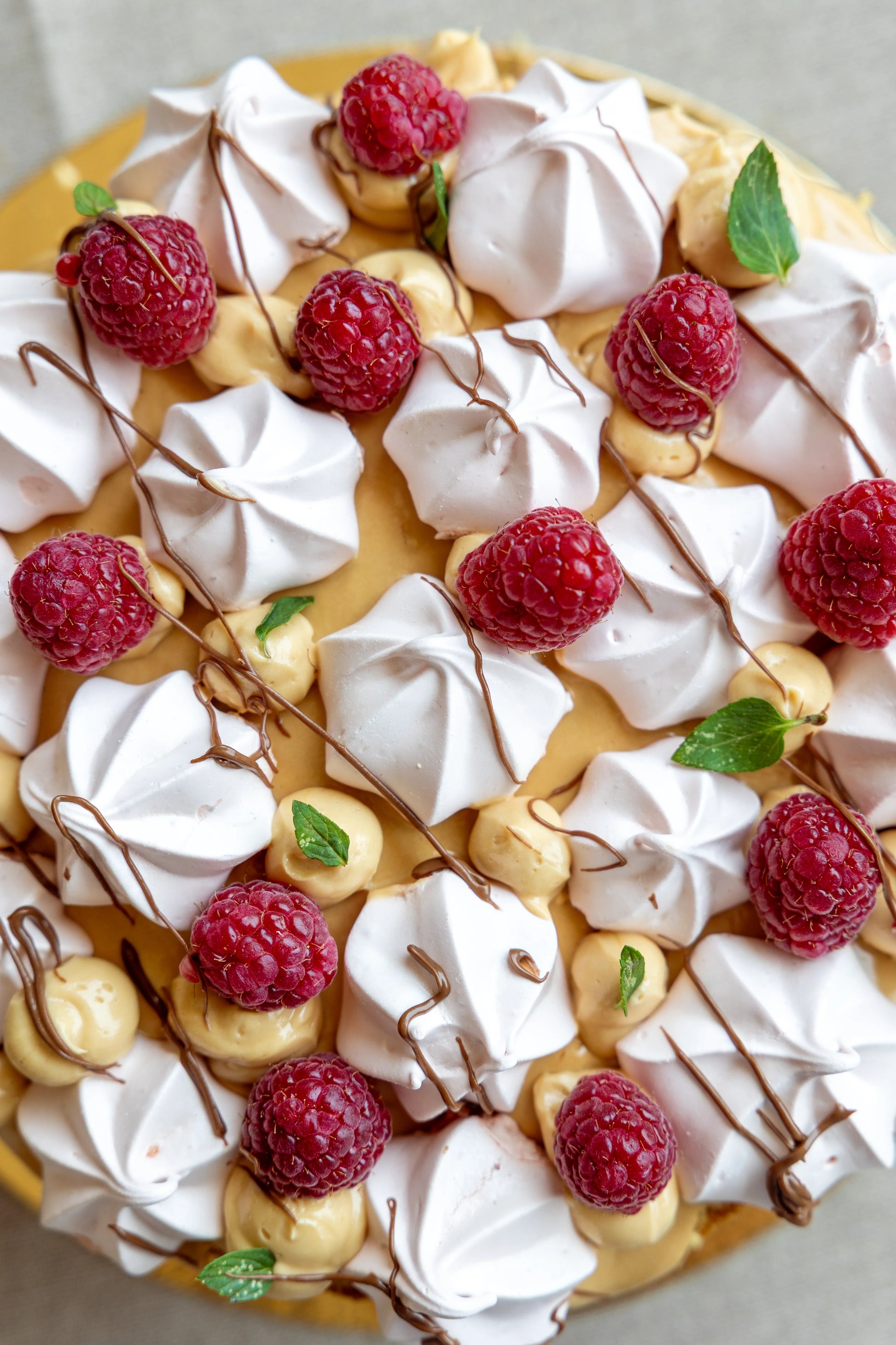 Déjate seducir por esta creación 100% artesanal, donde el sabor auténtico de América del Sur cobra vida en cada bocado. Una experiencia intensa, cremosa y elegante. Hecha con bizcocho esponjoso de coco, capas generosas de mousse de dulce de leche, crema de dulce de leche y dulce de leche clásico con un toque equilibrado de chocolate cremoso coronada con merenguitos mini de frambuesa y frambuesas frescas que aportan el contraste perfecto.